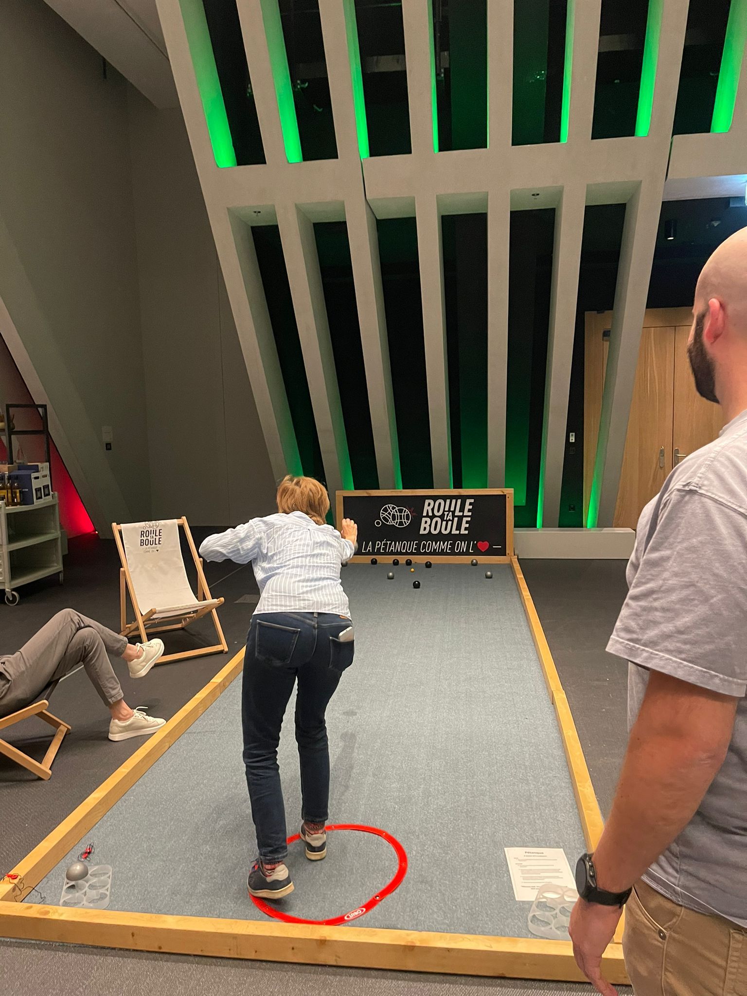 Pour qui ? | Nos terrains s’adaptent à chaque environnement afin de rendre l’activité accessible à toutes et à tous. Pas besoin d’être un pro car « Roule ta boule » est conçu avec une moquette et des boules souples. C’est donc sans danger, pour tous les âges et tous les niveaux |